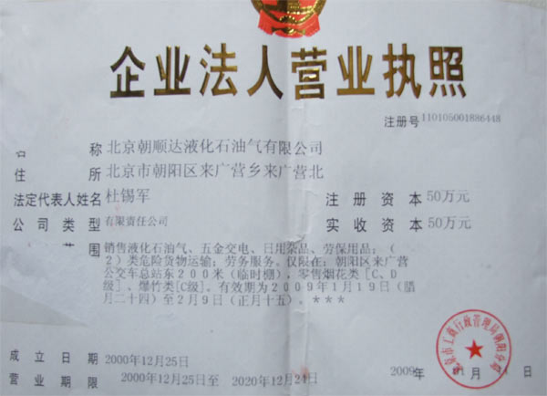 我公司,是一家經(jīng)北京市工商局正規(guī)注冊(cè)批準(zhǔn)的,有營(yíng)業(yè)資質(zhì)的正規(guī)燃?xì)夤。公司成立?000年12月,注冊(cè)資金50萬元。我公司主要是向北京市的學(xué)校、機(jī)關(guān)事業(yè)單位、飯店等提供石油液化氣配送業(yè)務(wù)。