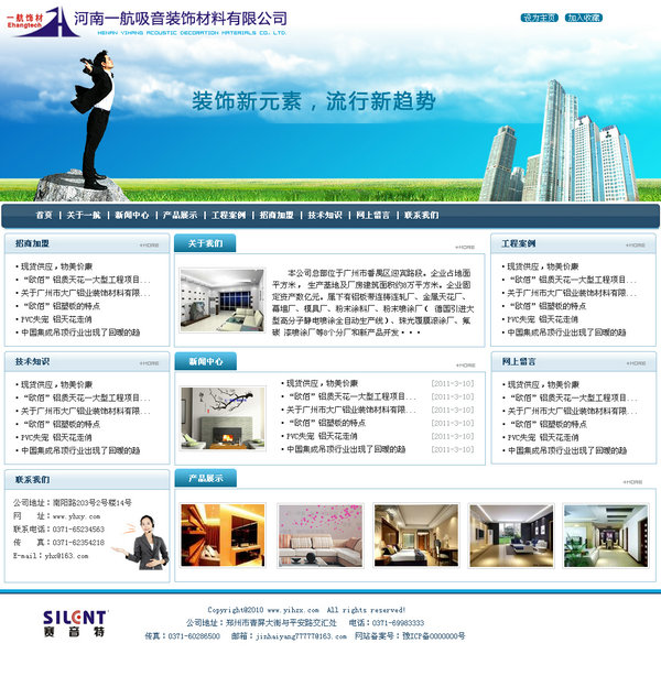 公司網(wǎng)址:http://www.hnxyb.com 關(guān)于一航: 河南一航吸音裝飾材料有限公司( www.hnxyb.com)是經(jīng)工商局登記注冊的集研發(fā)、生產(chǎn)于一體的專業(yè)聲學(xué)材料企業(yè)。是國內(nèi)最大的專業(yè)吸音材料生產(chǎn)基地之一,中國吸音板專業(yè)供應(yīng)商,中國吸音材料網(wǎng) 總運營商。公司擁有專業(yè)的聲學(xué)研究室“一航聲學(xué)研究室”,為廣大客戶提供專業(yè)的聲學(xué)咨詢、聲學(xué)設(shè)計。 公司獨立擁有行業(yè)知名品牌“賽音特”(www.hnxyb.com)系列吸音裝飾板。木質(zhì)吸音板系列:木質(zhì)條形吸聲板,木質(zhì)方格吸音板,木質(zhì)穿孔吸聲板,實木皮吸音板等;纖維吸音板系列:毛面纖維吸音板,光面纖維吸音板,壓花纖維吸聲裝飾板;木絲吸音材料系列:木絲吸聲板,木絲水泥板系列;吸隔聲絕熱噴涂;陶鋁不燃吸聲板;雕花裝飾板;環(huán)保吸音棉系列。公司產(chǎn)品廣泛應(yīng)用于政府、學(xué)校、體育場館、會議室、電視臺等既要求有裝飾裝潢效果,又有吸聲要求的場所。 專業(yè)成就品質(zhì),專業(yè)贏得信賴! 一航公司愿真誠與您合作,共創(chuàng)美好聲學(xué)空間!