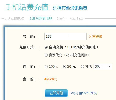 這張圖上顯示,充值50元,需要花費(fèi)49.53元,然后,我再100元、50元、其他這3項(xiàng)中,多切換選擇幾次,就出現(xiàn)這下面的情況: