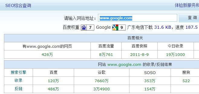 這里,我們用站長網(wǎng)的seo查詢工具來測試一下。