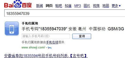 百度18355947039這個(gè)手機(jī)號(hào)的結(jié)果: