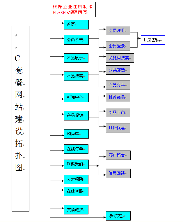 網(wǎng)站功能欄目 | 精美風格手工設計一套12個一級欄目。子頁面18個左右,100張圖片精美處理 |