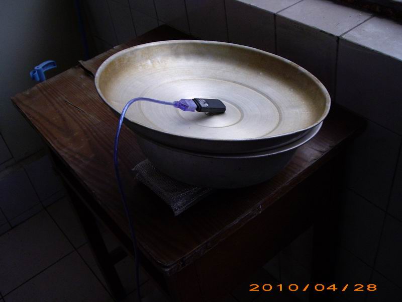 可以看到用銅絲把上網(wǎng)卡懸立起來后,1X信號(hào)比之前更好了,晚上上網(wǎng)的速度也能穩(wěn)定在80K/秒左右。 整個(gè)信號(hào)增強(qiáng)器,只花了18元購(gòu)置一根5米的USB數(shù)據(jù)延長(zhǎng)線,上面用的是一個(gè)蒸饅頭用的蒸鍋的鍋蓋,下面是一個(gè)鋁制的臉盆,用一個(gè)東西把下面的臉盆一邊墊高一點(diǎn),讓鍋蓋的弧面能朝向窗口方向。就是這么簡(jiǎn)單的東西,使我終于體驗(yàn)到了所謂的電信3G高速上網(wǎng)。如果你也有我以前的問題,也可以試試。(藍(lán)浪原創(chuàng)文章,轉(zhuǎn)載請(qǐng)注明出處:lanlang.com/blog/u/lanlang)