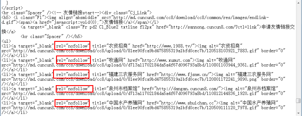 ![]() No.3:不宜交換內(nèi)頁(yè)鏈接。這一點(diǎn)并不是絕對(duì)的,假如對(duì)方站點(diǎn)的內(nèi)頁(yè)權(quán)重非常的高,也是可以考慮的,如果對(duì)方的站點(diǎn)時(shí)內(nèi)頁(yè)同時(shí)權(quán)重收錄等等不如你,那么即使對(duì)方說(shuō)的多好聽,筆者都不建議你與其進(jìn)行交換。 No.4:不宜交換含js代碼的鏈接。這點(diǎn)是好多朋友換鏈接的時(shí)候忽視的。檢查的方我們可以把鼠標(biāo)至于對(duì)方站點(diǎn)的友鏈上 ,看一下狀態(tài)上的地址是否是跳轉(zhuǎn)地址,同時(shí)我們可以查看站點(diǎn)的頁(yè)面代碼,看看是否有跳轉(zhuǎn)的代碼,如下圖所示。 No.5:不宜交換導(dǎo)出鏈接太多的鏈接。根據(jù)蛋糕原理。分的人越多,你得到的就越少。即使對(duì)方的權(quán)重是9。但他有好幾百個(gè)友情鏈接。根據(jù)谷歌PR計(jì)算公式:PR(a)=d+(1-d)*(網(wǎng)頁(yè)A的PR值/網(wǎng)頁(yè)A導(dǎo)出的鏈接)+……(1-d)*(網(wǎng)頁(yè)N的PR值/網(wǎng)頁(yè)N導(dǎo)出的鏈接)。根據(jù)這個(gè)公式算下來(lái),從這個(gè)站點(diǎn)上你所傳遞過(guò)來(lái)的權(quán)重少之又少,對(duì)此我們?cè)诮粨Q友鏈的時(shí)候,不要只是關(guān)注對(duì)方權(quán)重有多高,導(dǎo)出鏈接往往影響更大。 No.6:不宜交換含有nofollow標(biāo)簽的鏈接。nofollow標(biāo)簽做優(yōu)化的人都應(yīng)該清楚它的用處吧。他會(huì)阻止蜘蛛進(jìn)行跟蹤,同時(shí)也阻止了權(quán)重的傳遞。查詢的方法也很簡(jiǎn)單,我們只要直接打開對(duì)方站點(diǎn)頁(yè)面的源文件,查看其中nofollow的事情情況。當(dāng)然也并不是一定不換,如果是一些流量大的站點(diǎn)可以換,雖然有該標(biāo)簽,但是這也可以為我們的站點(diǎn)帶來(lái)一定的流量。就如同我們知道百度經(jīng)驗(yàn)的外鏈有nofollow標(biāo)簽,但是百度經(jīng)驗(yàn)的外鏈可以很好的為我們帶來(lái)流量,我們也是可以適當(dāng)?shù)慕ㄔO(shè)的。