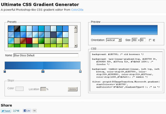 YAML Builder是強大的可視化布局工具,只需要簡單的設置參數和拖拽模塊就能快速創(chuàng)建基于YAML的布局。 Ultimate CSS Gradient Generator by ColorZilla