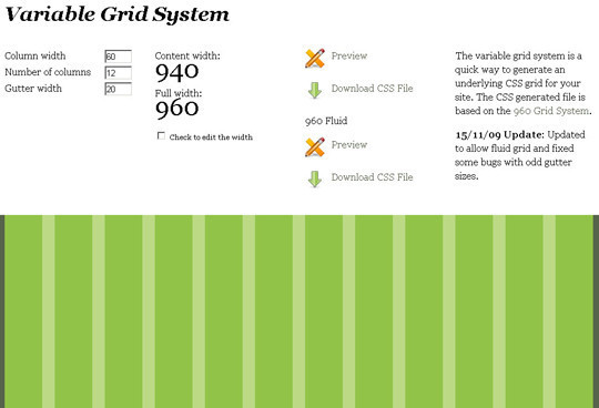 The variable grid system 是一款快速生成CSS網格的工具,基于 960 網格系統(tǒng)。