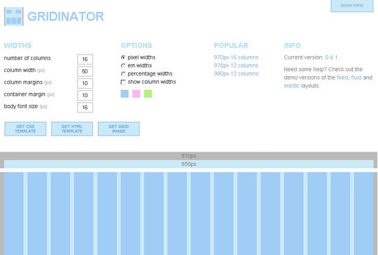 Gridinator 幫助你生成基于960.gs的網格布局。