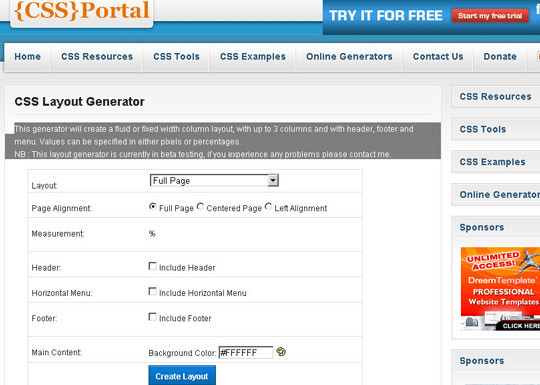 這是一款非常輕量的CSS網格工具。 Free CSS Template Code Generator