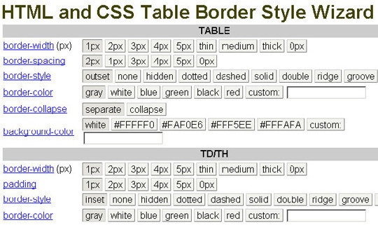 使用 CSS Table Wizard 試驗邊框樣式并生成對應代碼。