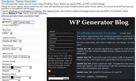 一款WordPress主題在線生成工具。